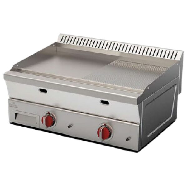 Gas Grill ( 80×60 plate CE) smooth & ribbed plate, Stainless steel body, LPG and NG connection feature, oil collection channel, drain drawer